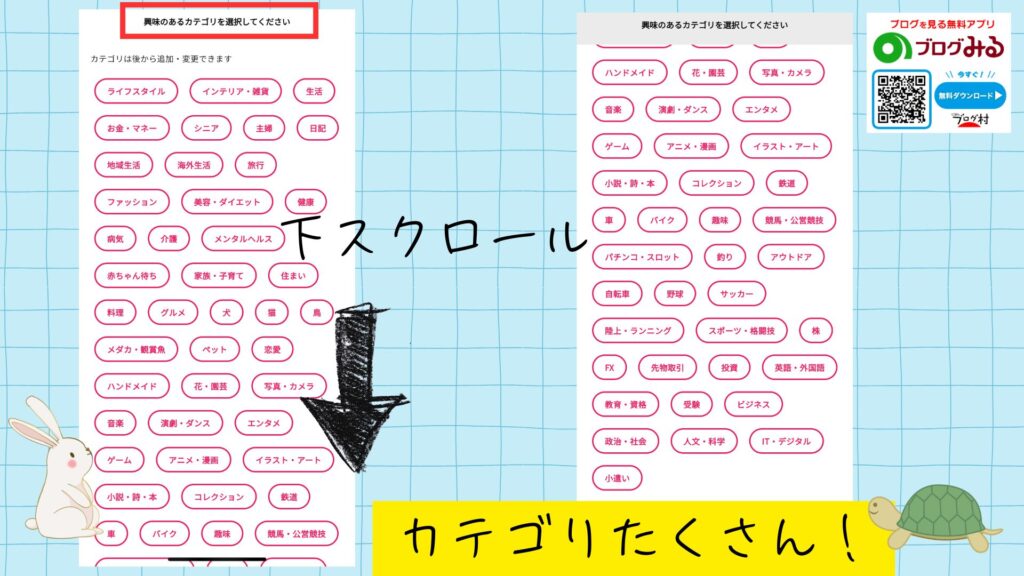 ログインに成功すると以下のような様々なブログカテゴリーが表示され、興味のありそうなものを選択できます。