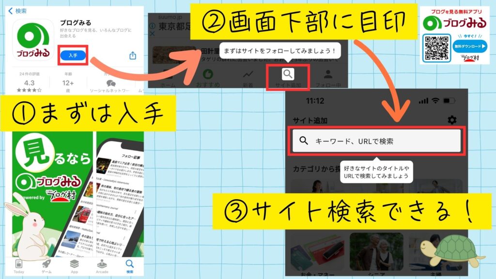 まずは「ブログみる」をApp Store / Google Playからダウンロードしましょう。