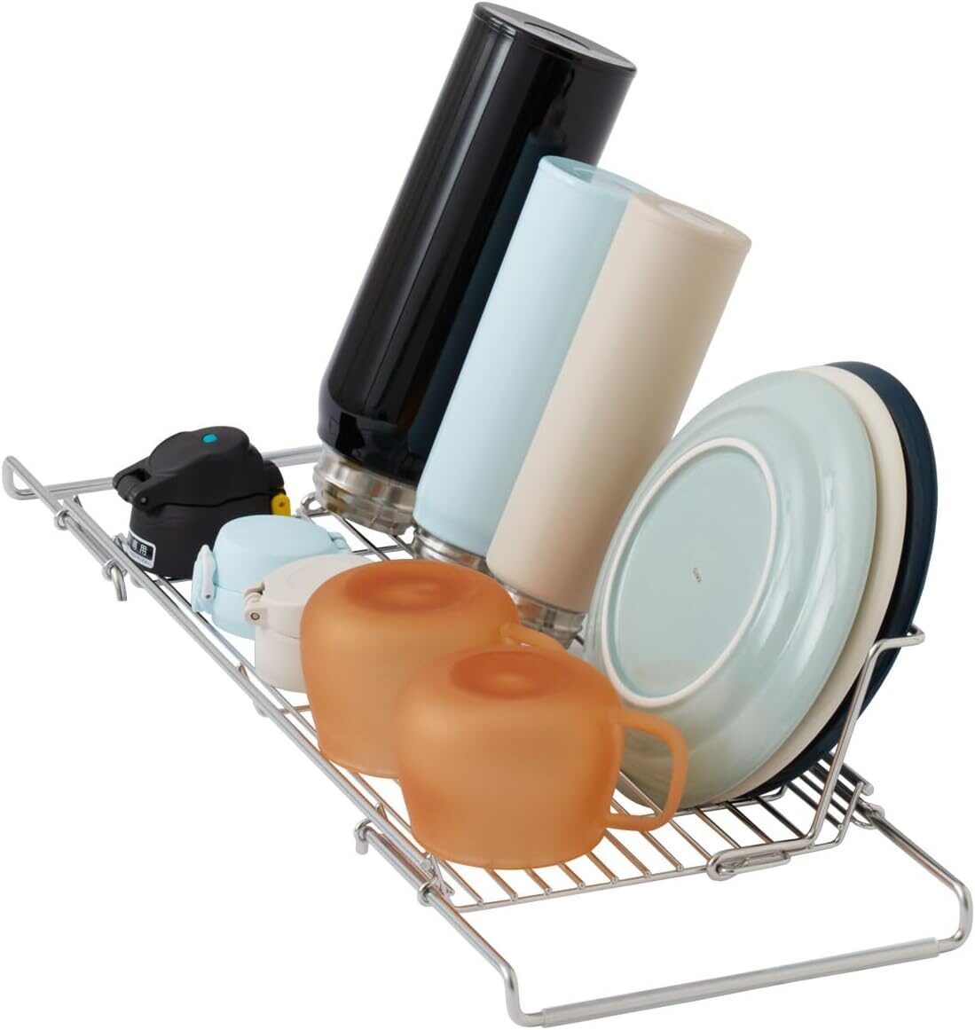 大皿は立てて、コップや小物類は平らな網部分で乾燥させています。
