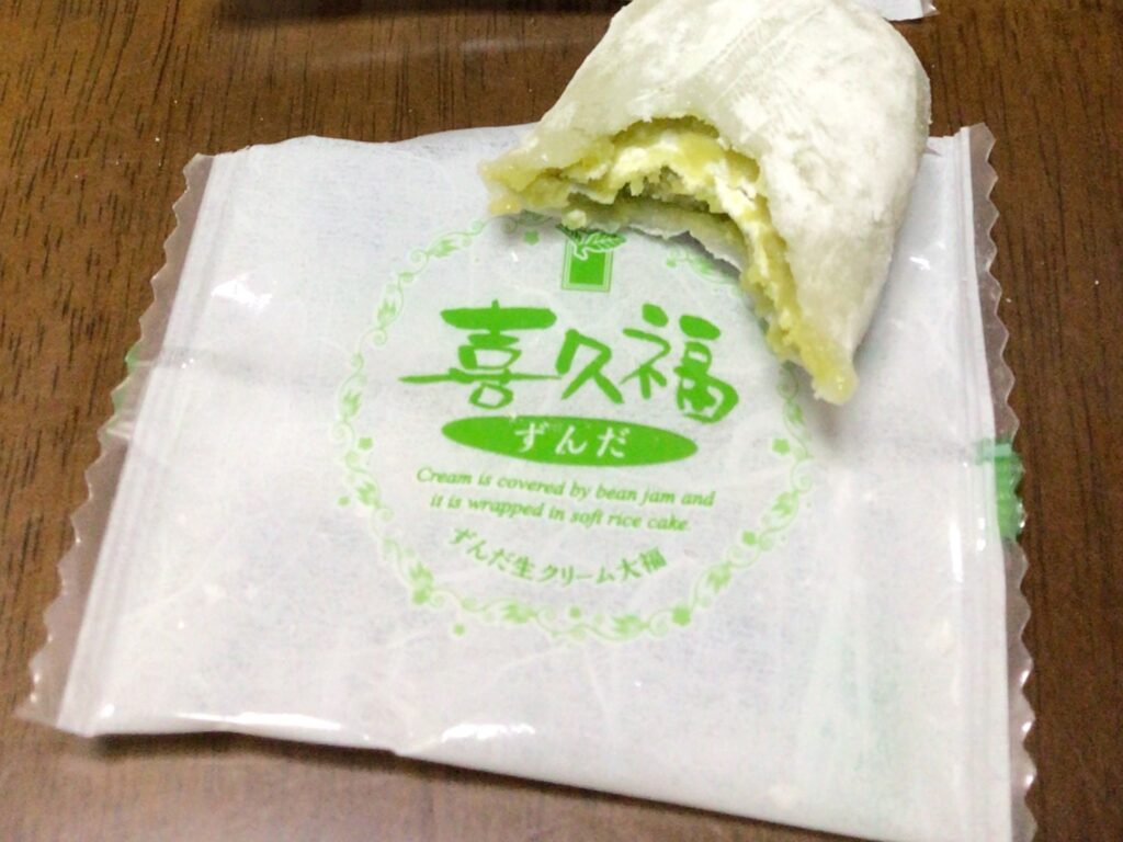 ずんだ餡とバターを組み合わせたクリームが入った生クリーム大福で、通常の「喜久福」よりもリッチな味わいが特徴です。