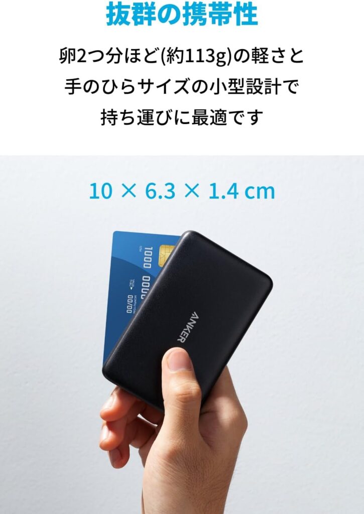 大容量でコンパクトなAnkerのモバイルバッテリーは、旅行や仕事でも大活躍です。