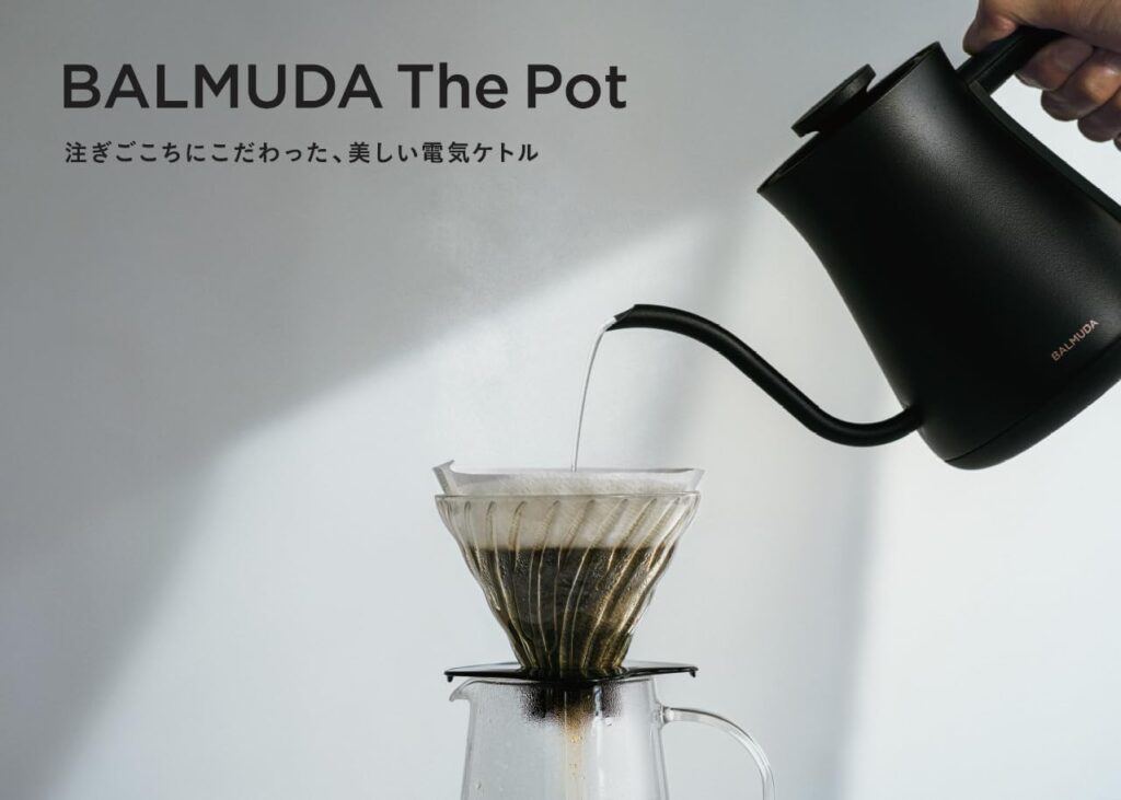 バルミューダの電気ケトルは注ぎやすさも抜群で、コーヒーや紅茶を淹れる時間がもっと楽しくなります。