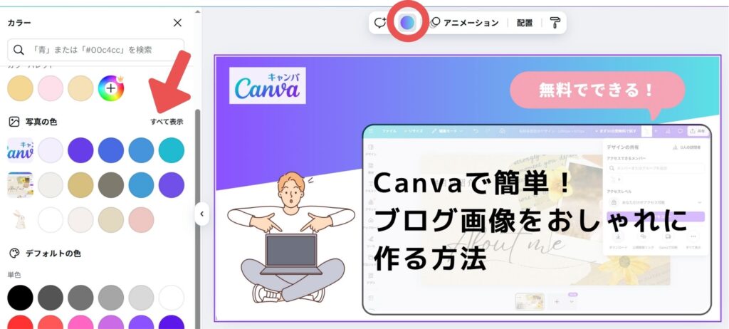 しかも、素材を選択すれば写真の色を自動提案してくれるので、色見を合わせやすいです。