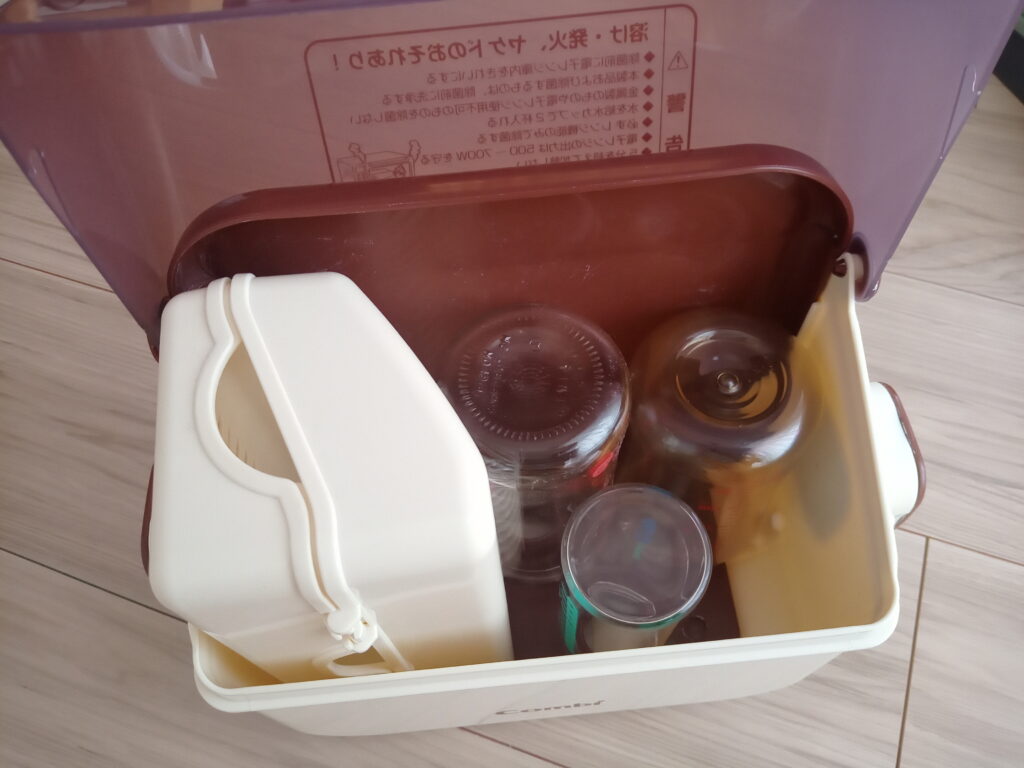 わが家では、240mlの哺乳瓶2本と100mlの小瓶1本がピッタリ収納しました!