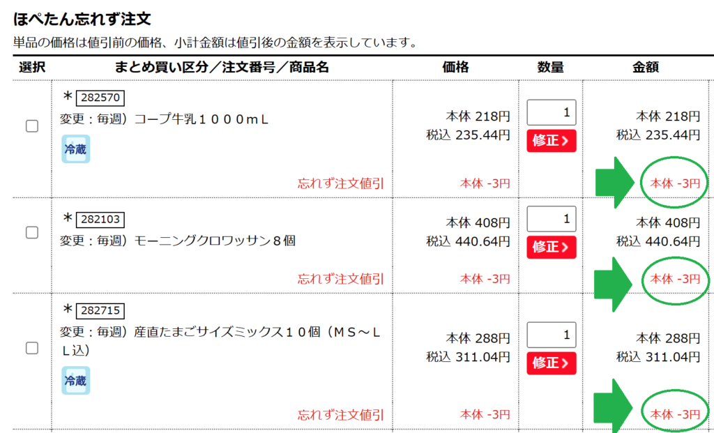 定期注文(ほぺたん忘れず注文)すると割引があるんです!