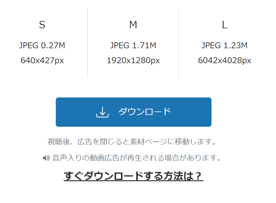 無料会員でもSサイズなら1日に9枚までダウンロードOKです!