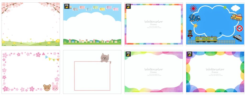 例えば、「フレーム 子供向け」と検索すると以下のようなフレームが出てくるよ!
