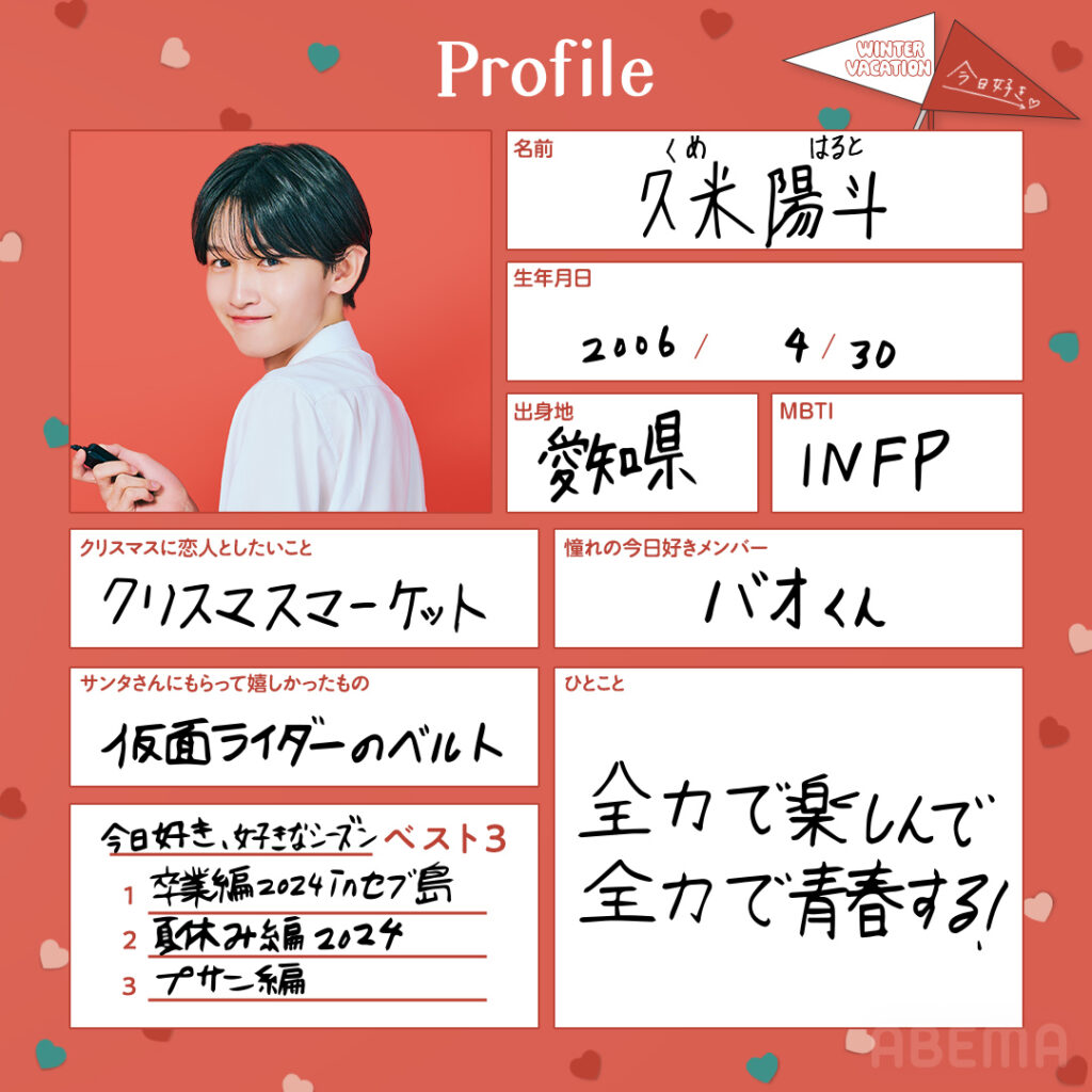 「今日好き」の冬休み編2024がABEMAで11/25(月)より始まりました!