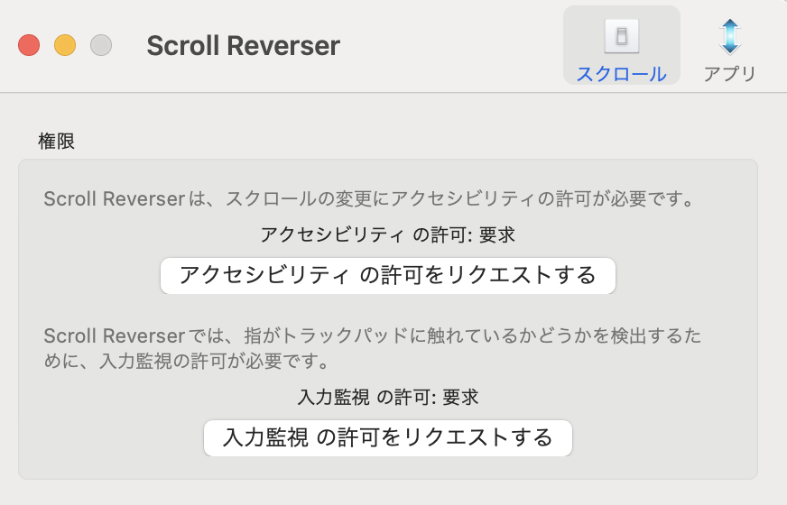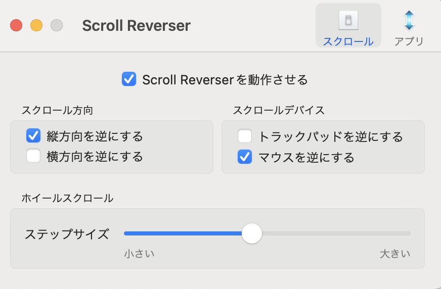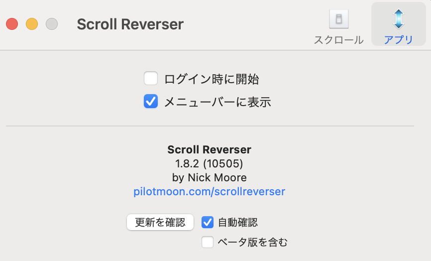 無事にインストールまで完了したら、「SCROLL REVERSER」を早速使ってみましょう。