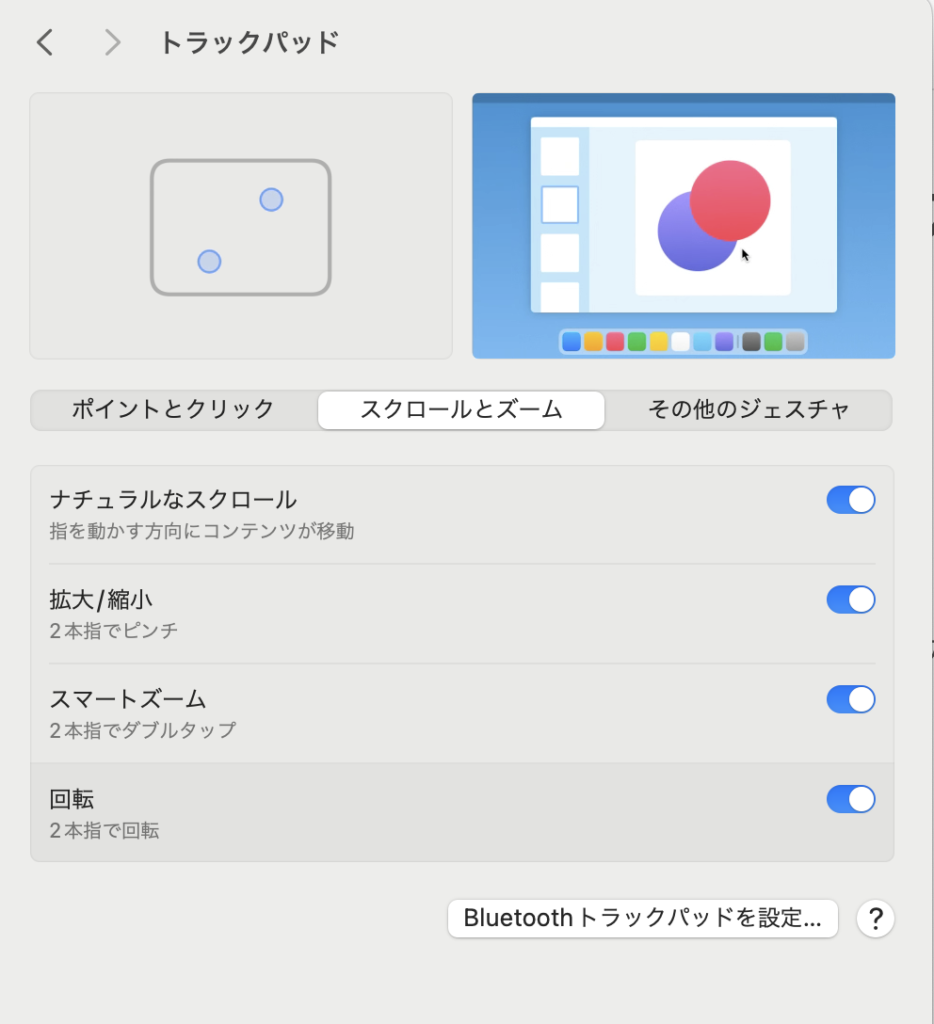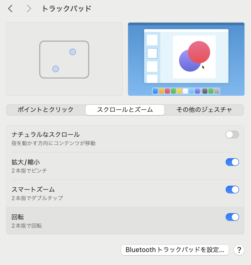 トラックパッドのスクロール設定