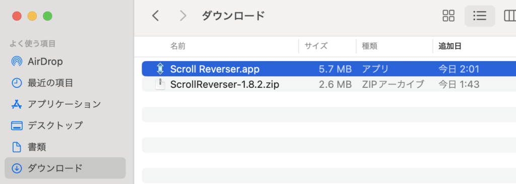 「ScrollReverser-1.8.2.zip」をダブルクリックしましょう。
