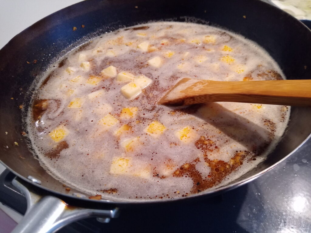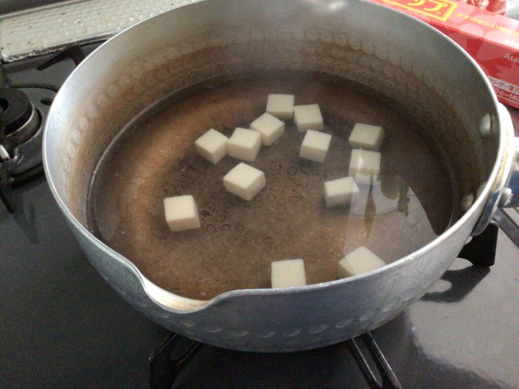 冷凍のままフライパンに投入 → 2〜3分煮込むだけで、絹ごしのなめらかさを残したまま、しっかり形をキープ。