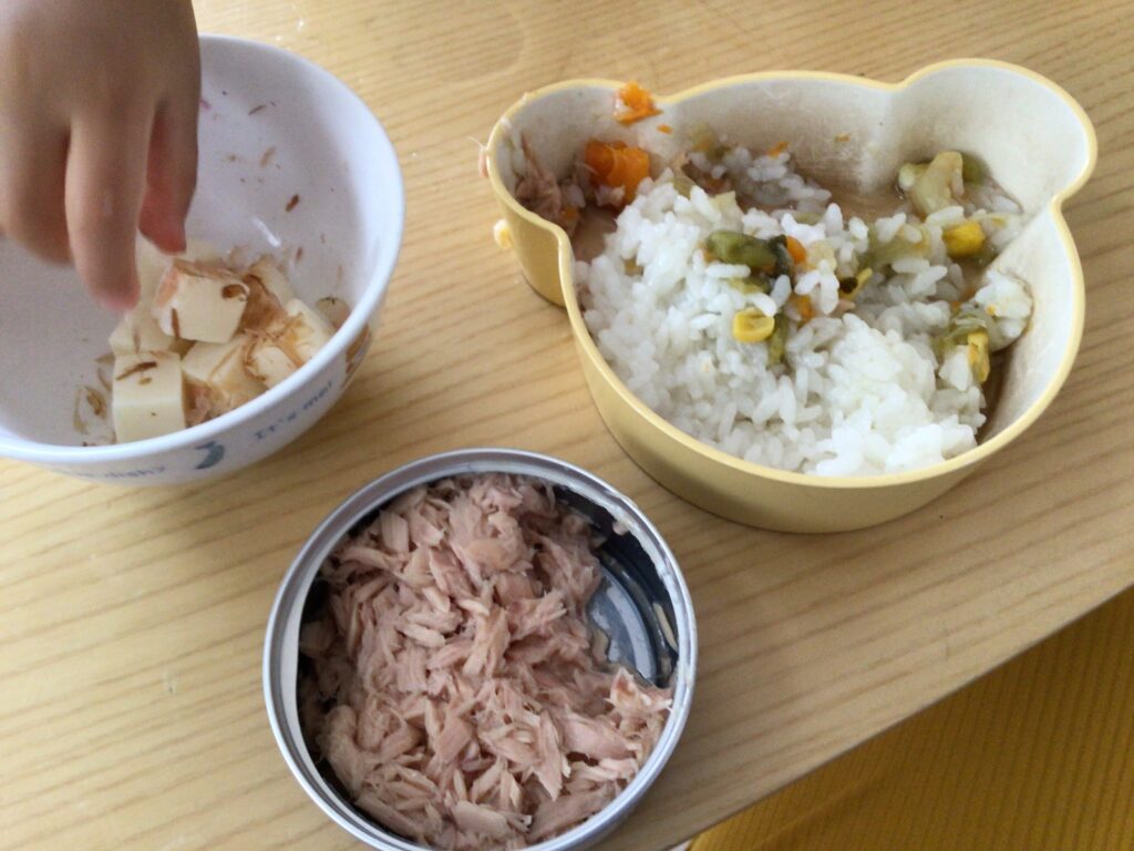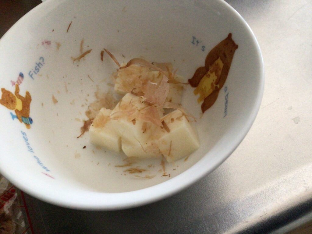 1歳半の娘には、便利とうふを茹でてやわらかくして、鰹節をふりかけるだけ。