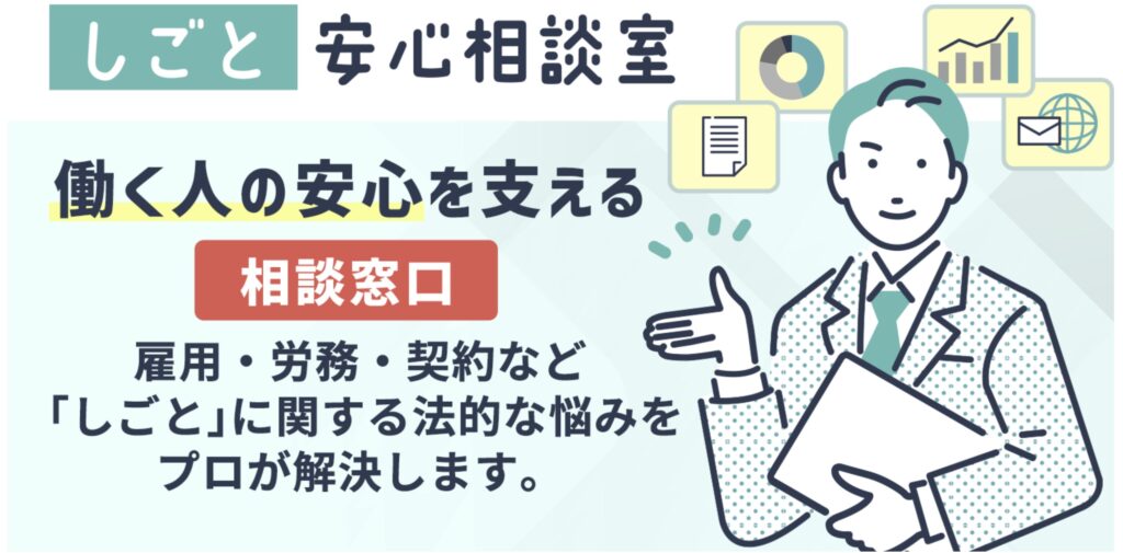 働く人の安心を支える相談窓口。雇用・労務・契約など「しごと」に関する法的な悩みをプロが解決します。