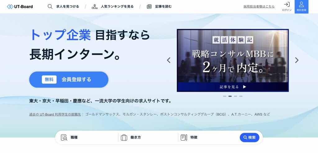 UT-Boardは、ハイクラス大学生に向けた長期求人インターンサイトです。