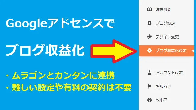 ムラゴンでは、Amazonアソシエイトなど各種アフィリエイト広告はもちろん、Google AdSenseを使った収益化が可能です。
