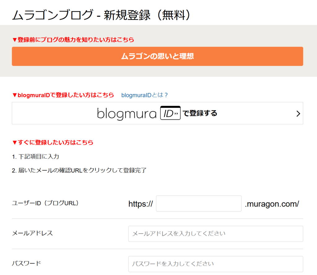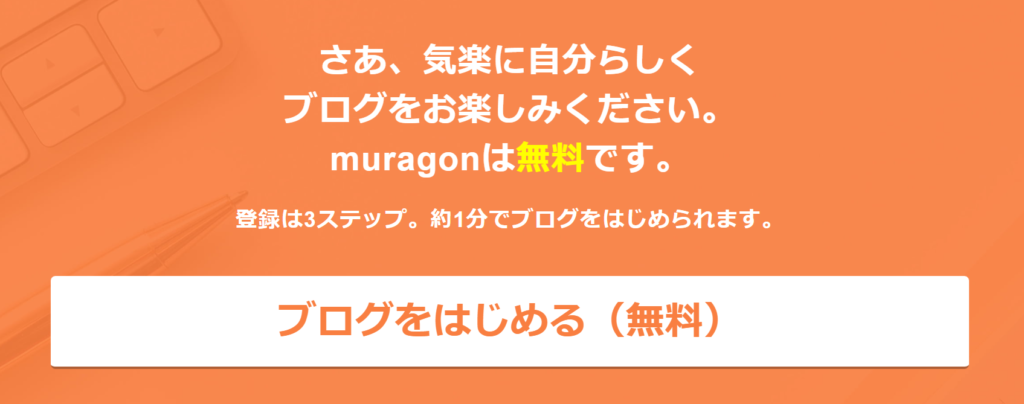 ムラゴンの公式ページに行き、「ブログをはじめる(無料)」ボタンをクリックします。