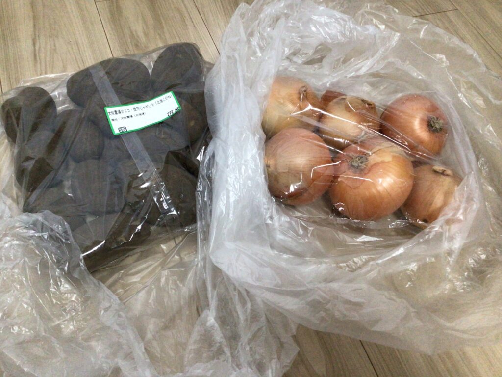 例えば、先日はじゃがいも1.8kgを税込み408円、玉ねぎ1.6kgを430円で購入しました。