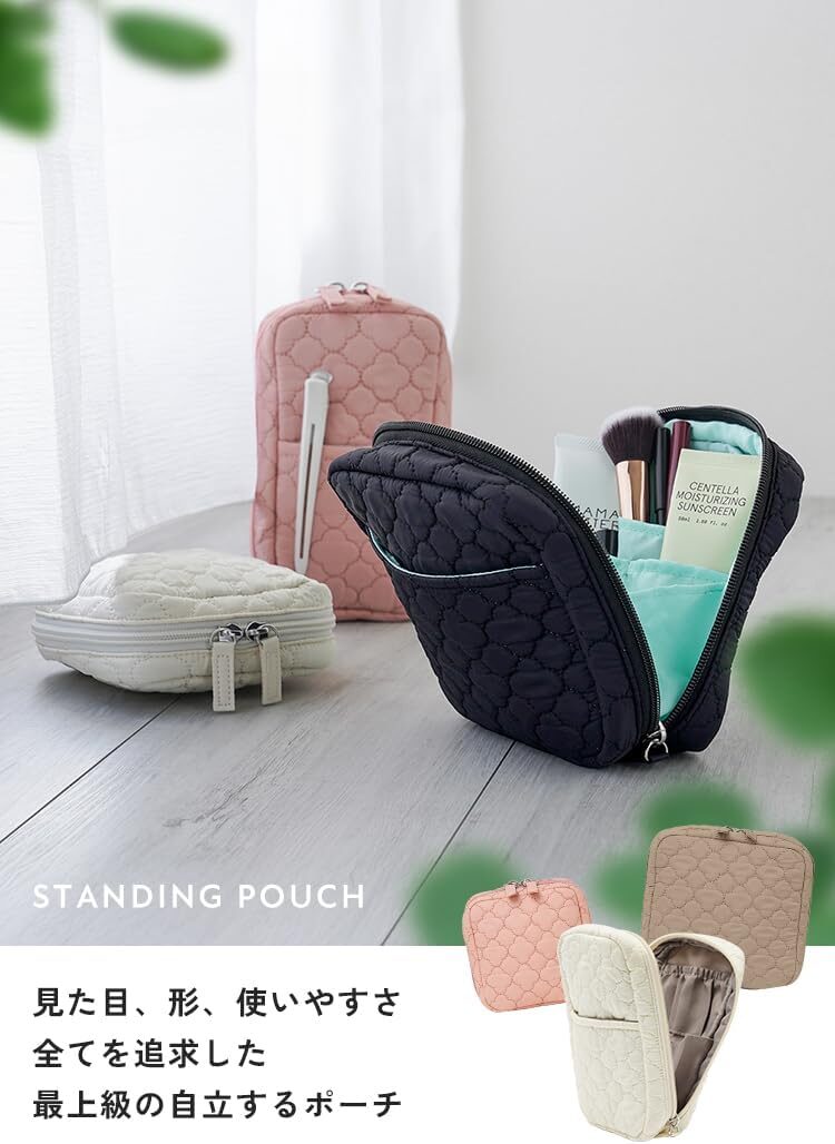 自立する化粧ポーチの一番の魅力は、毎日のメイク動作が自然とスムーズになることだと感じました。